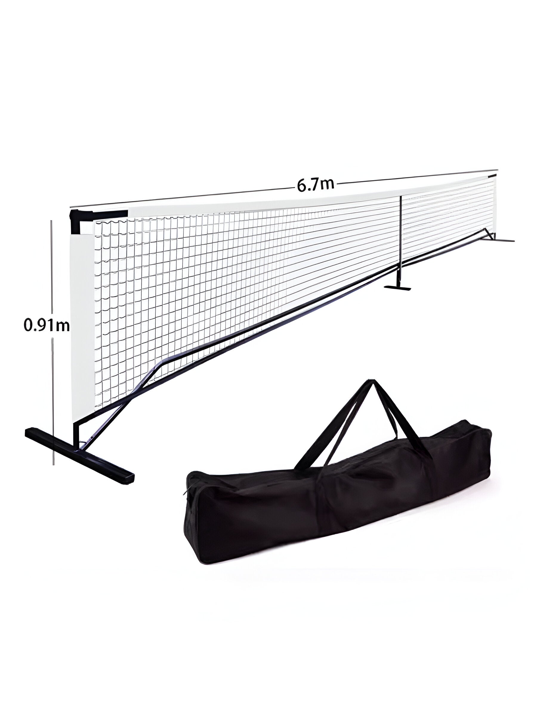 - γππππππ πππππ π ππππγ The pickleball net support frame is made from hollow steel tubes 1 mm in thickness and 20mm in diameter with metal coating ensure long-lasting use and sturdy support during play. 24 inches wide base providing extra strength, sturdiness and durability for all weather play.